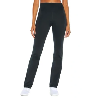 High-rise bootleg pant with 4" waistband for full coverage, tummy control, and slimming compression. Contender Luxe is fit for ultimate versatility and everyday comfort. It's a moisture-wicking and double-knit fabric for added coverage, with a brushed finished that makes it soft, smooth and extra cozy. Boot-cut silhouette with a narrow leg and a slight flare at the hem. Waistband pocket detail. Full length with a 32" inseam