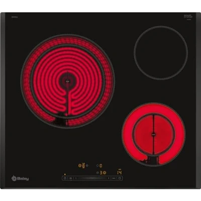 Balay 3EB765LQ Ceramic Hob Plate, 3 Cooking Zones, 60 cm, Programming Function, Large Area 28 Bevelled