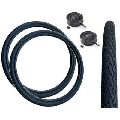 Baldy's PAIR 700 x 35c Black Slick Road Tread Tyres & Schrader Valve Inner Tubes For Hybrid Trekking Bikes (Pack of 2)