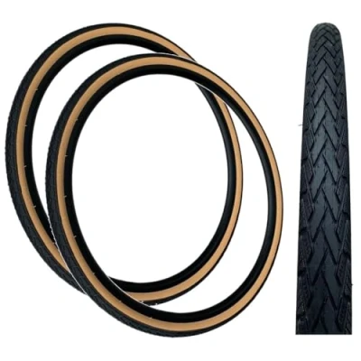 Baldy's PAIR 700 x 35c Black with Tan Amber Wall Slick Road Tread Tyres For Hybrid Trekking Bikes (Pack of 2)