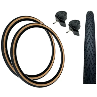 Baldy's PAIR 700 x 35c Black with Tan Amber Wall Slick Road Tread Tyres & Presta Valve Inner Tubes For Hybrid Trekking Bikes (Pack of 2)