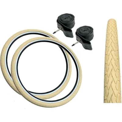 Baldy's PAIR 700 x 35c CREAM Slick Road Tread Tyres & Presta Valve Inner Tubes For Hybrid Trekking Bikes (Pack of 2)