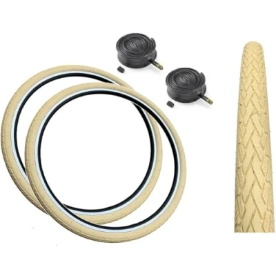 Baldy's PAIR 700 x 35c CREAM Slick Road Tread Tyres & Schrader Valve Inner Tubes For Hybrid Trekking Bikes (Pack of 2)