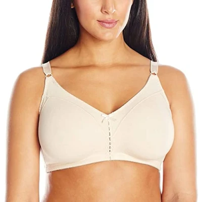 SUPERB SUPPORT, NO WIRES - Bali's signature M-frame construction provides outstanding support, even in larger sizes. THE COMFORT OF COTTON - Soft, cotton-rich knit has the perfect amount of stretch, making this bra feel like your favorite tee. SEAMLESS SMOOTHNESS - Seamless cups almost disappear under knits and other clingy clothes, making this a great T-shirt bra. STRAPS STAY PUT - Stay-in-place straps, designed without stretch in larger sizes for extra support. DELICATE DETAILS - Tiny, lace-edged front cutouts and a satin bow adorn this cotton-knit wirefree bra. FASHION FLEXIBILITY - Deep U-shaped back works with low-back styles. QUALITY FABRIC - Bali's super comfortable Double Support wireless bra is made of a soft knit of cotton/spandex.