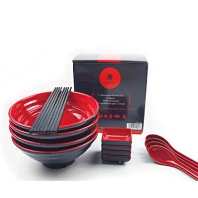 COMPLETE QUALITY RAMEN KIT - Experience authentic Asian dining with BaliBetov. Each ramen set comes with everything you need. Complete tableware to serve your family and guests. Includes: 4 Asian bowls, 4 chopsticks, 4 small dishes for sauce and 4 spoons. Feel like you are eating out at a fancy Asian restaurant from the comfort of your home. ALL INCLUDED PERFECT SIZE - 32 oz - 950 ml large ramen bowls with 8inches diameter. The perfect size to ensure all toppings stay securely in the japanese soup bowls without spilling. Serve a significant portion, and it will be at the right temperature until the last bite. Great for Ramen, Noodle, Pho, Udon, Salad, Soba, Rice, Pie, cereals, popcorn, oatmeal or any Soup meals. DURABLE & EASY TO CLEAN - Crafted from durable and restaurant-grade melamine material, our noodle soup bowls are drop resistant, lightweight, made to last. Unlike ceramic bowls that are heavier and easily breakable this set is designed to enjoy it for years to come. Convenient to use and even easier to clean, Safe for Dishwasher Top. Create an authentic japanese dining atmosphere with our unbreakable bowls! SPECIAL GIFT - Our ramen bowl set with chopsticks and spoon includes a Japanese style packaging making it a perfect gift for your friends, family or co-workers. Ideal as a birthday gift for students, ramen lovers, parents, partners, etc. SATISFACTION GUARANTEED - Our customer's satisfaction is our main priority. If for any reason you are unsatisfied or have any issue with the product, please contact us and give us the chance to rectify the problem. We assume complete responsibility for all our shipments and are determined to provide total satisfaction to our valued customers., Manufacturer: BALIBETOV