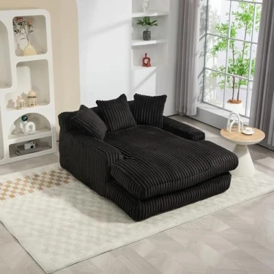Ball & Cast Chaise Lounge Chair Indoor, Sofa Bed with Pillows and Armrests, Boneless Corduroy Cloud Couch for Bedroom Living Room No Assembly, Corduroy, Black