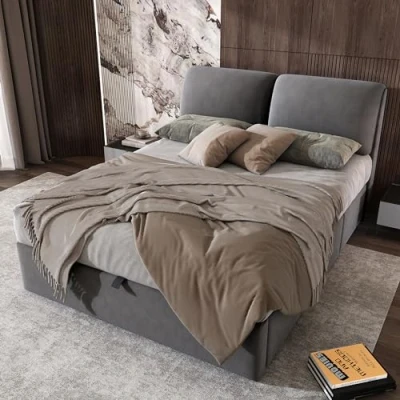 LARGE STORAGE SPACE: There are three drawers on one side of the bed and the bed base offers plenty of storage space. You can store your bed linen, clothes or other items in these areas to keep your bedroom neat and organised. COMFORTABLE HEADBED: The stylish elephant ears add to the beauty of your bedroom, the adjustable headboard provides extra comfort and makes you more relaxed when reading or watching TV in bed. HYDRAULIC BED DESIGN: The design of the hydraulic bed makes it easy for you to open the bed base and store your belongings in it. This design makes storage even more convenient. STRONG AND DURABLE SLATTER FRAME: The slatted frame provides good support and durability to ensure the stability and durability of the bed. This design helps to protect the mattress and prolong its life. VELVET FABRIC: Velvet fabric provides a soft and cosy touch that makes the bed look more luxurious and sophisticated. This fabric is also easy to clean and maintain.
