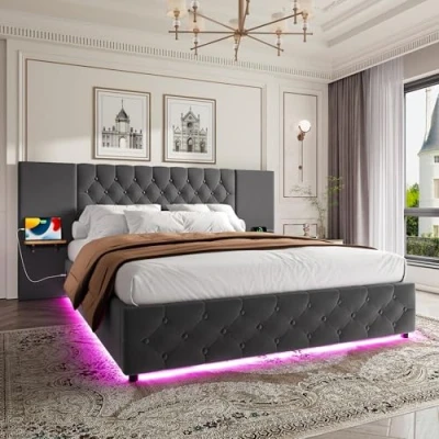 【bed double with LED light strips】 The headboard and footboard of the double beds are equipped with LED light strips that can be controlled via a mobile app, offering 16 different colours and 12 dynamic modes. This ottoman storage bed creates a customisable, dazzling atmosphere.The included remote control allows for easy adjustment of the light strips, enabling you to set the perfect mood with various colors and lighting effects, enhancing the overall bedroom experience. 【LED Lights and Charging Station】 King size bed frame is equipped with 1 USB Ports, 1 Type-C port and LED strip light. You can charge your phone/Ipad conveniently while lying in bed, and enhance your bedroom ambiance with this optional self-adhesive LED light strip. Just adjust its color and brightness to meet your diverse needs and enjoy your colorful life. 【Comfortable Upholstered Bed @@@A9492yU7C/yrG9sKa5Pwnji7Je2If1P3@@@】 King size bed frame is built of metal steel structure and upholstered headboard filled with high-density sponge, soft and cozy, appearing classic and elegant. It is a thoughtful design of this cushioned backrest that your fatigue from the day will be completely released here. Anti-slip plastic foot pads protect floor from scratches. 【Product Size】 King Size Bed Frame (inner) 209 x 151 x 103cm (L*W*H), 29cm(H) under bed storage give you storage spaces for your boxes/bags/shoes etc., keeping your bedroom organized and tidy. 【Please note】This bed frame double bed is divided into 2 packages, these packages may not arrive at the same time. Please wait 2-3 days. If you have any questions, please contact customer service.