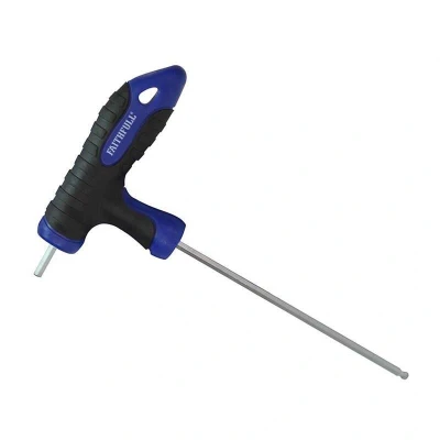 General description This Faithfull Ball Ended T-Handle Hexagon Key is designed for repeated use, providing extra leverage and comfort. It features a soft grip T-handle and is constructed from durable chrome vanadium steel. The key has a ball-ended long arm for better access in tight spaces and a standard short arm for versatility. Technical specifications Size: 4mm Blade Length: 100mm Overall Length: 149mm Compatibility and accessories Compatible with hexagon socket screws and bolts of 4mm size Installation No installation required; simply insert the hexagon key into the screw or bolt to tighten or loosen Usage Ideal for DIY, home improvement, and professional tasks requiring hexagon screws Use the ball end for better access in tight or hard-to-reach areas Other information