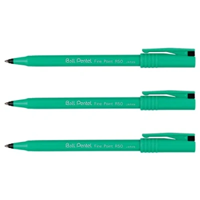 Pentel Ball R50 Ink Rollerball Pens Recycology Green (Pack of 3)