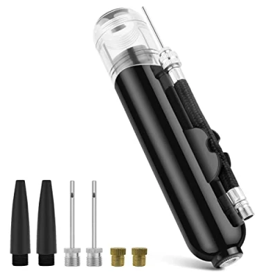 Hand Pump for Balls: Basketball pump is dual action inflating function, pull or push is all inflating for the ball, fast pumping for your basketballs, footballs and all sports balls, or inflating your bicycle under emergency Easy to Carry: Small size, 6 in×1.5 in×1.5 in weighting only 3 ounces, fit it in your bag, or even your pocket. Convenient for you to carry around to inflate your sports ball Various Accessories: What do you get? 9PCS, including 1*dual action ball pump, 2*plastic tapered nozzles, 1*flexible hose, 3*inflating metal needles, 2*presta valve Widely Application: Sports ball pump is suitable for footballs, volleyballs, basketballs, soccer balls, yoga balls, inflatable pool toys and most other inflatable sports balls Never Be Without Air: Unlike electric air pumps, our exercise balls pumps do not require batteries, so you never have to worry about without batteries