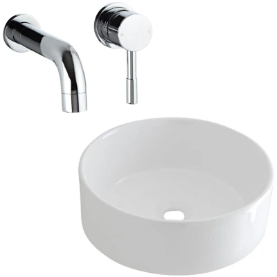 Ballam Modern 400mm White Ceramic Round Countertop Bathroom Basin Sink With Wall Mounted Tap Milano
