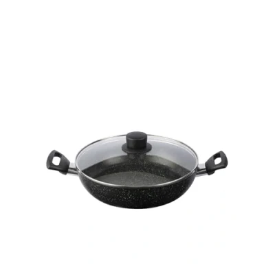 PURE COOKING PLEASURE: The ideal partner when it comes to roasting, braising and steaming. Perfect for large pieces of meat, stews and sauces or for quickly cooking vegetables. DURABLE & ROBUST: This aluminium casserole dish has a four-layer Nerolite non-stick coating that prevents your food from sticking or burning and is especially scratch-resistant. RAPID HEAT DISTRIBUTION: Both the patented bimetallic base with specially designed metal elements and the radiant induction technology ensure quick and even heat distribution on induction cookers and make roasting and braising a pleasure. HANDLE THE HEAT: The ergonomic handles of the high-rimmed pan makes it suitable for everyone: it is easy to handle and stays cool, even during long cooking times. DELIVERY PACKAGE: BALLARINI Vipiteno casserole dish with lid, round, diameter top 28 cm/base 21.4 cm, L42.7 x W29.1 x H13.7 cm, aluminium, Nerolite non-stick, suitable for all hob types incl. induction, dishwasher-safe, dark granite/white specks, item 1022756.
