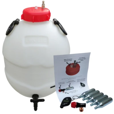 Tonys TipsThe top of the range, Balliihoo Premium Brewing Barrel with LCD Temperature Indicator and new improved Balliihoo 4" control cap witheasy to operate bottomlever tap. Alarge diameter neck is great to insert the hand and forearm for thorough and easy cleaning.Usespecially formulated, Pressure Barrel Seal Grease available from Balliihoo to ensure a good airtight seal with no fear of Contaminating the brew.Some clever new Balliihoo modifications are now included in this full setup; A Tyre Pressure Gauge (Doubling as a key ring) removes "Pressure Guesswork." There is now a valve service kit extractor/replacement tool available from Balliihoo to recondition your valve every 20 brews or so. A Co2 control tap which allows you to top up the Co2 pressure in small increments and not have to blow the whole contents of a bulb in one hit, meaning less wastage and the ability to get the internal barrel pressure just where you like it, for the perfect pint pour all of the time.The Square section Seal in the cap rim is a major improvement ensuring a positive airtight seal.