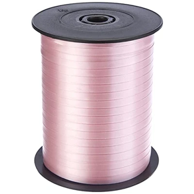 Light pink curling ribbon spool. Easily secure helium balloons to a balloon weight or weighted centrepiece with this durable ribbon. This strong curling ribbon can also be used to decorate gifts, DIY crafting and tying up flower bouquets. Each spool holds 500m of ribbon.