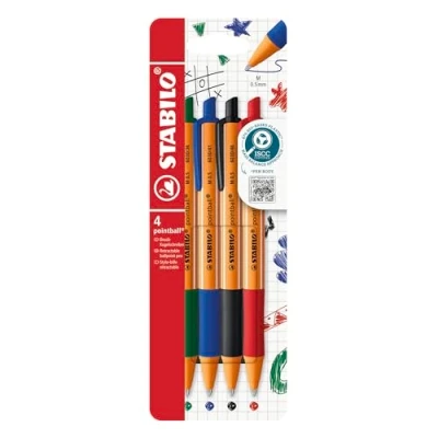 Ballpoint Pen STABILO pointball Pack of 4 Blue, Black, Red Green