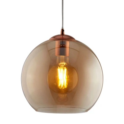 The standout feature of this pendant light is its spherical, amber-coloured glass lampshade. This unique design not only adds a touch of sophistication but also plays a crucial role in creating a special lighting effect. When illuminated, the amber hue gently filters the light, casting a warm glow that enhances the ambience of any room. Whether placed above a dining table, in a living room, or even in a hallway, this pendant creates both the perfect lighting conditions and a cozy atmosphere.