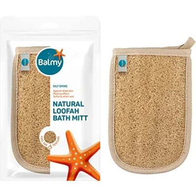 Balmy Naturel Loofah Sponge Bath Glove Exfoliating Natural Mitt, Shower Bathing With The Pads, Body Scrubbing