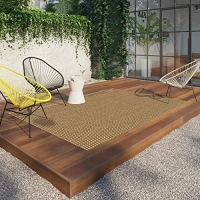 This 160 x 230 cm rug combines the popular sisal look with rich tone-on-tone colours and a textured design. With its natural look and structure with earthy tones, it looks great in any bedroom, kitchen, living room, dining room, terrace or balcony. Natural sisal-inspired indoor and outdoor rug made from 100% polypropylene This plain plain rug in brown, beige and ivory tones will look good in any industrial style home. This rug is both water and fade resistant. Vacuum regularly. Place a damp cloth on the stain and dab, do not rub. Professional cleaning recommended if the stain remains resistant. This rug is Oekotex 100 and REACH certified.