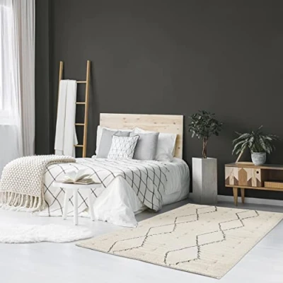 BALTA Rug for the Living Room with Berber Spirit, Scandinavian Bedroom, Flat Weave and Pile Height 22 mm, 3D Effect, 100% Polypropylene, 120 x 170 cm, Black Cream