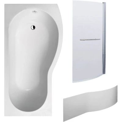 General description Enhance your bathroom with the right-hand B Shape Shower Bath Bundle in Gloss White. This set includes an acrylic tub, adjustable leg set, front panel, and a B-shaped shower screen, designed to provide a practical bath and shower solution while allowing flexible tap placement in smaller bathrooms. The modern design combines functionality with style, offering a wider showering area for comfort and a clean finish by concealing under-bath pipework. Technical specifications Bath dimensions: 1695mm x 900mm x 415mm Bath panel dimensions: 1695mm x 500mm x 150mm Shower screen dimensions: 1430mm x 858mm x 38mm Material: Durable and lightweight acrylic Screen: 6mm toughened glass with chrome profile Warranty: 5 Years manufacturer's guarantee Compatibility and accessories Undrilled for taps; tap and waste not included Adjustable leg set included for stability on any floor Matching B-shaped front panel included Usage The B Shape Shower Bath Bundle is designed for both bathing