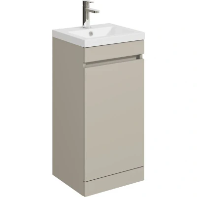 ManoManoBalterley 400mm Floor Standing 1 Door Compact Unit with Polymarble Basin - Pebble Grey Give even the smallest bathroom a fresh modern feel with this compact floor standing vanity unit. The soft pebble grey finish, soft close door and integrated polymarble basin create a refined, practical vanity solution that is ready to install. Ideal for cloakrooms, guest washrooms or compact bathrooms where you want sleek styling, smart storage and everyday functionality. The Balterley 400 mm Floor Standing 1-Door Compact Unit with Polymarble Basin in Pebble Grey combines contemporary design with practical convenience in a slim footprint. Its narrow floor standing frame suits compact layouts where space matters. The soft close door opens to reveal useful concealed storage for toiletries and essentials while the integrated basin offers a ready to use wash point. Delivered fully assembled, the unit simplifies installation and provides a clean, modern vanity setup with minimal effort. Product
