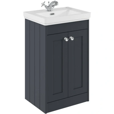 Balterley 500mm Floor Standing 2 Door Unit with Classic Basin 1 Tap Hole Satin Dark Grey