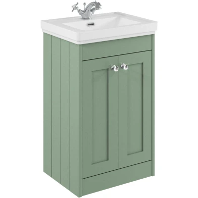Balterley 500mm Floor Standing 2 Door Unit with Classic Basin 1 Tap Hole Satin Green