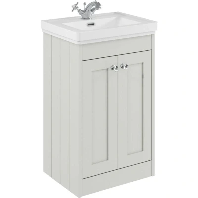 Balterley 500mm Floor Standing 2 Door Unit with Classic Basin 1 Tap Hole Satin White