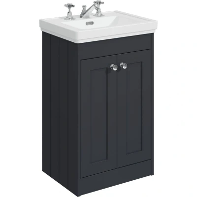 Balterley 500mm Floor Standing 2 Door Unit with Classic Basin 3 Tap Hole Satin Dark Grey