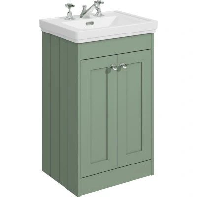 Balterley 500mm Floor Standing 2 Door Unit with Classic Basin 3 Tap Hole Satin Green