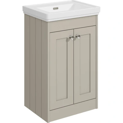 Balterley 500mm Floor Standing 2 Door Unit with Classic Basin No Tap Hole Pebble Grey