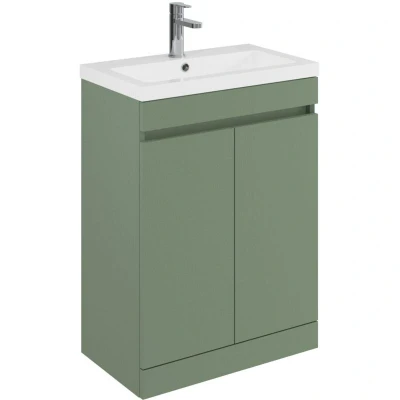 Balterley 600mm Floor Standing 2 Door Compact Unit with Polymarble Basin - Green Introduce rich contemporary style and everyday convenience to your bathroom with this 600 mm floor standing vanity unit. The Green finish and soft close doors create a refined look while the integrated polymarble basin provides a ready to install solution. With generous storage and a compact footprint this unit is ideal for medium bathrooms where design practicality and reliability matter. The Balterley 600 mm Floor Standing 2 Door Compact Unit with Polymarble Basin in Green combines bold colour with practical storage in a versatile design. Its 600 mm width offers useful concealed space for toiletries towels and essentials while the integrated basin gives you a ready to use washpoint from installation. The soft close doors open smoothly and quietly and the unit arrives fully assembled for quick fuss free fitting. The rich Green finish adds character and works well in modern interiors making this unit a
