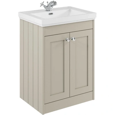 Balterley 600mm Floor Standing 2 Door Unit with Classic Basin 1 Tap Hole Pebble Grey