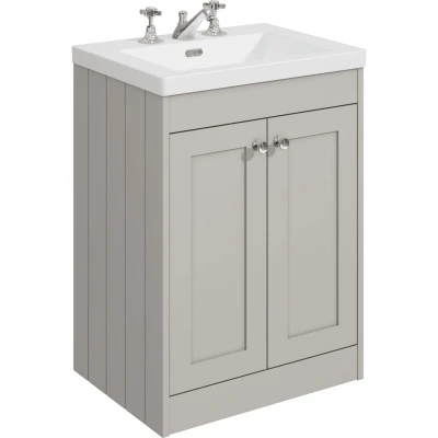 Balterley 600mm Floor Standing 2 Door Unit with Minimalist Basin 3 Tap Hole Pebble Grey