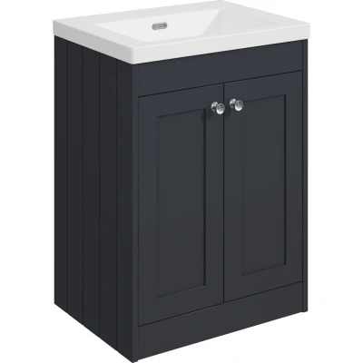 Balterley 600mm Floor Standing 2 Door Unit with Minimalist Basin No Tap Hole Satin Dark Grey