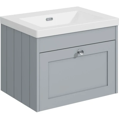 Balterley 600mm Wall Hung 1 Drawer Unit with Minimalist Basin No Tap Hole Satin Grey
