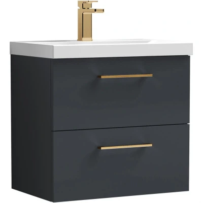 Balterley 600mm Wall Hung Bathroom 2 Drawer Vanity Unit and 1 Tap Hole Ceramic Basin, Satin Dark Grey with Brushed Pewter Handles Designed to bring style and practicality together, this unit creates a clean, modern focal point in your bathroom. Its wall-hung look enhances the feeling of space while keeping essentials neatly tucked away. Perfect for everyday living. Crafted from high-quality materials, this vanity unit is built to last with a durable finish that stands up to daily use. The soft-close drawer mechanism ensures smooth, quiet operation while protecting the unit from wear and tear. Precision manufacturing delivers a sleek design with reliable performance you can trust. Product Highlights: Satin Finish: Elegant bathroom vanity unit with a smooth satin finish that adds timeless sophistication and a touch of luxury. Wall Hung Design: Contemporary bathroom vanity unit with a space-saving wall-hung design that enhances floor space, creates a modern floating look, and makes
