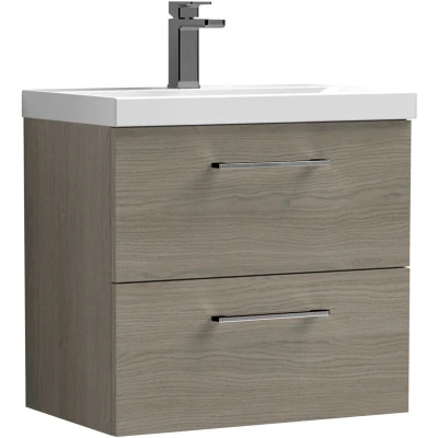 Balterley 600mm Wall Hung Bathroom 2 Drawer Vanity Unit and 1 Tap Hole Ceramic Basin, Woodgrain Mid Oak with Brushed Pewter Handles Designed to bring style and practicality together, this unit creates a clean, modern focal point in your bathroom. Its wall-hung look enhances the feeling of space while keeping essentials neatly tucked away. Perfect for everyday living. Crafted from high-quality materials, this vanity unit is built to last with a durable finish that stands up to daily use. The soft-close drawer mechanism ensures smooth, quiet operation while protecting the unit from wear and tear. Precision manufacturing delivers a sleek design with reliable performance you can trust. Product Highlights: Woodgrain Finish: Stylish bathroom vanity unit with a durable woodgrain finish that brings natural warmth and texture to your bathroom décor. Wall Hung Design: Contemporary bathroom vanity unit with a space-saving wall-hung design that enhances floor space, creates a modern floating