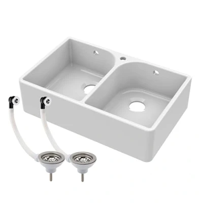 ManoManoDouble Bowl Fireclay Ceramic Butler Kitchen Sink with Full Weir, Overflows & Wastes Upgrade your kitchen with this durable double bowl fireclay Butler sink, featuring overflows and full weir for smooth water management. Two bowls create space for multitasking and effortless hosting. It make it easy to multitask, from meal prep to cleanup. Handcrafted fireclay is resistant to heat and scratches. Full weir design with dual overflows ensures efficient drainage, creating a practical, reliable, and classic centerpiece for modern kitchens. Product Highlights: Style: Fits perfectly with a range of kitchen styles, blending traditional charm with modern elegance. From cosy, vintage kitchens to sleek, modern spaces, its versatile design brings a touch of class to your kitchen. Fireclay craftsmanship: Sink handmade using traditional methods by Master Potters, offering strength, authenticity, and a crisp white finish that lasts for years. Spacious Double Bowl Design: Dual deep bowls offer