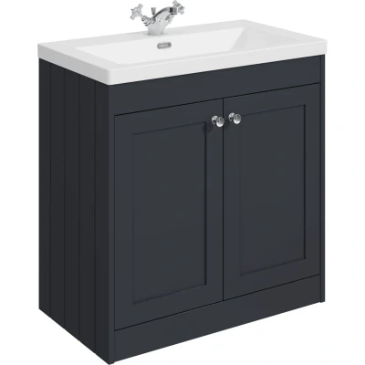 Balterley 800mm Floor Standing 2 Door Unit & Minimalist Basin 1 Tap Hole Satin Dark Grey