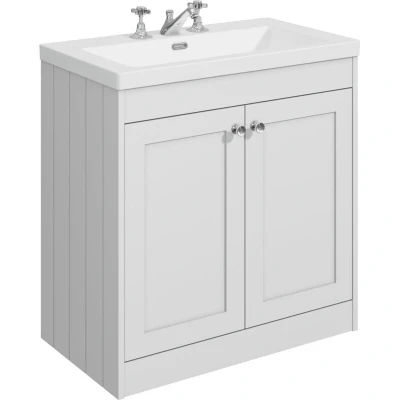 Balterley 800mm Floor Standing 2 Door Unit with Minimalist Basin 3 Tap Hole Satin White