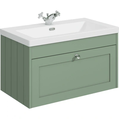 Balterley 800mm Wall Hung 1 Drawer Unit & Minimalist Basin Tap Hole Satin Green