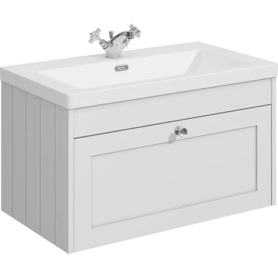 Balterley 800mm Wall Hung 1 Drawer Unit & Minimalist Basin Tap Hole Satin White