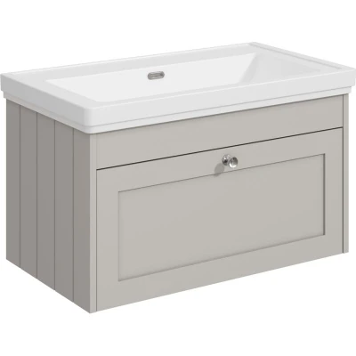 Balterley 800mm Wall Hung 1 Drawer Unit with Classic Basin No Tap Hole Pebble Grey