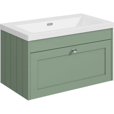 Balterley 800mm Wall Hung 1 Drawer Unit with Minimalist Basin No Tap Hole Satin Green