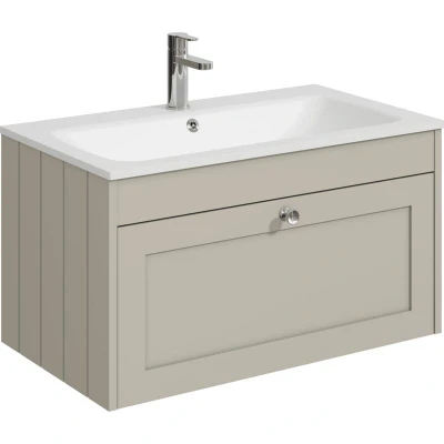 Balterley 800mm Wall Hung 1 Drawer Unit with Stone Basin Tap Hole Pebble Grey