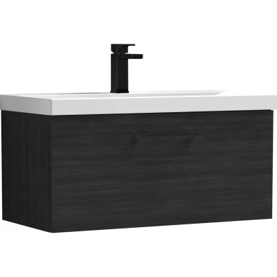 Balterley 800mm Wall Hung Bathroom 1 Drawer Vanity Unit and Tap Hole Ceramic Basin, Woodgrain Black with Handle