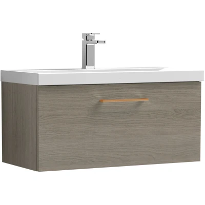 Balterley 800mm Wall Hung Bathroom 1 Drawer Vanity Unit and Tap Hole Ceramic Basin, Woodgrain Mid Oak with Copper Handle