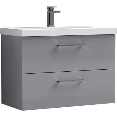 ManoManoBalterley 800mm Wall Hung Bathroom 2 Drawer Vanity Unit and 1 Tap Hole Ceramic Basin, Satin Grey with Brushed Pewter Handles Designed to bring style and practicality together, this unit creates a clean, modern focal point in your bathroom. Its wall-hung look enhances the feeling of space while keeping essentials neatly tucked away. Perfect for everyday living. Crafted from high-quality materials, this vanity unit is built to last with a durable finish that stands up to daily use. The soft-close drawer mechanism ensures smooth, quiet operation while protecting the unit from wear and tear. Precision manufacturing delivers a sleek design with reliable performance you can trust. Product Highlights: Satin Finish: Elegant bathroom vanity unit with a smooth satin finish that adds timeless sophistication and a touch of luxury. Wall Hung Design: Contemporary bathroom vanity unit with a space-saving wall-hung design that enhances floor space, creates a modern floating look, and makes everyday